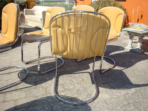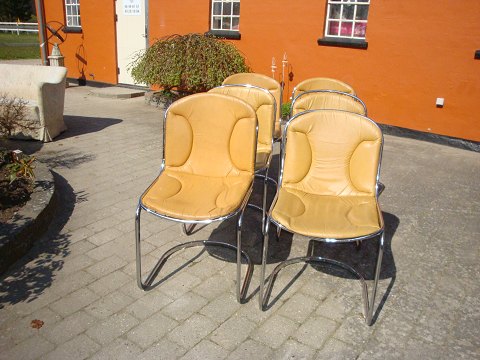 Sold7 pcs chairs with light brown leather and chrome frame Danish design from 1960 5000 m2 showroom