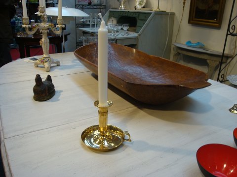 SoldFlat candlestick in brass from 1880. Has been repaired and is of good quality.