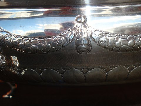 Silver Bowl on feet with chasings.Hallmarked from 1923. Height 9 cm dia. 31 cm. In Perfect condition.