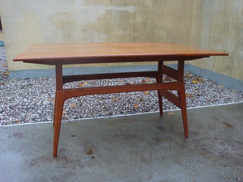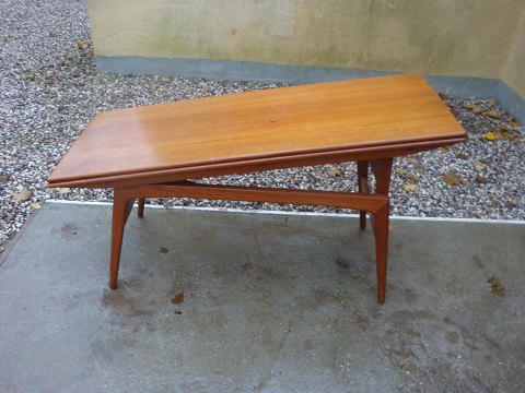 SolgtSofabord i teaktræ der kan indstilles til spisebord. Dansk design fra 1960érne. Bordet er meget flot og i super kvalitet.