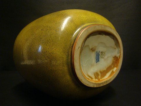 Royal Oval Stoneware Vase in solfatara glaze of Nils Thorsson. Height 18.5cm. I very good condition.
