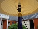 SolgtHolmegaard bordlampe i blåt glas. Lampen måler 39cm i højden.