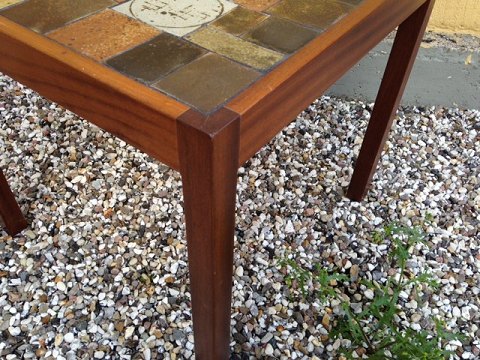 SoldLamp table with tiles. The wood is mahogany and a good table of great Danish design from 1960´s.