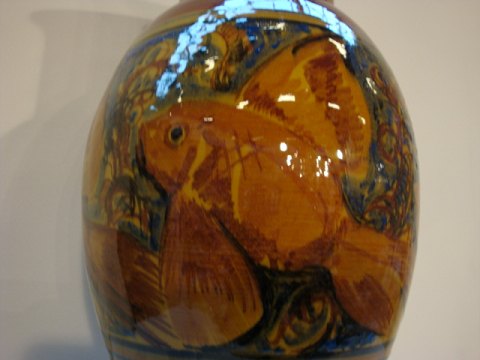 Floor Vase by Herman Kähler with fish motifs in beautiful brownish shades.