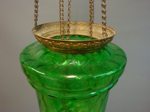 Antique hanging lamp with green glass from the year 1860 and is in good condition.