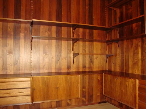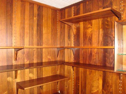 SoldComplete 2 * 3,5 m shelf system by Poul Cadovius in rosewood and of great quality. The shelf system contains 8 wallboards, 6 lower cabinets of which 2 are with drawers and the rest with doors, including 15 shelves.