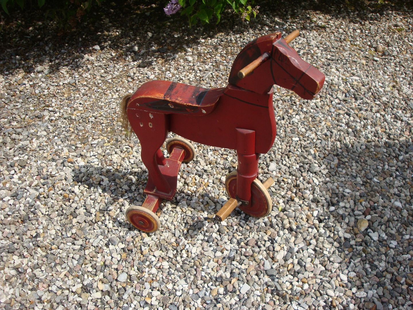 SoldThree wheeled bike-horse in a reddish color and in good condition, from around 1930.