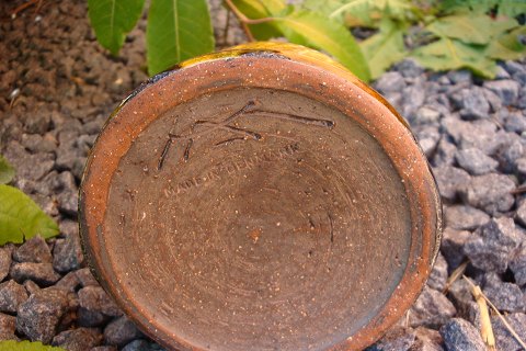 Vase by Hermann Kähler, two-tone in mustard yellow / brownish color.