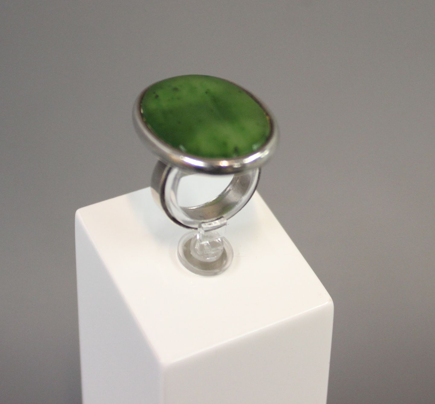 SoldSilver ring stamped 925s from From with a large oval green Aventurine.