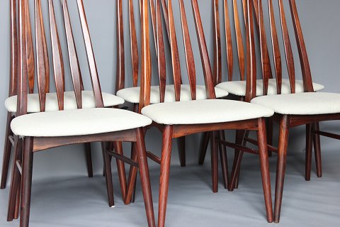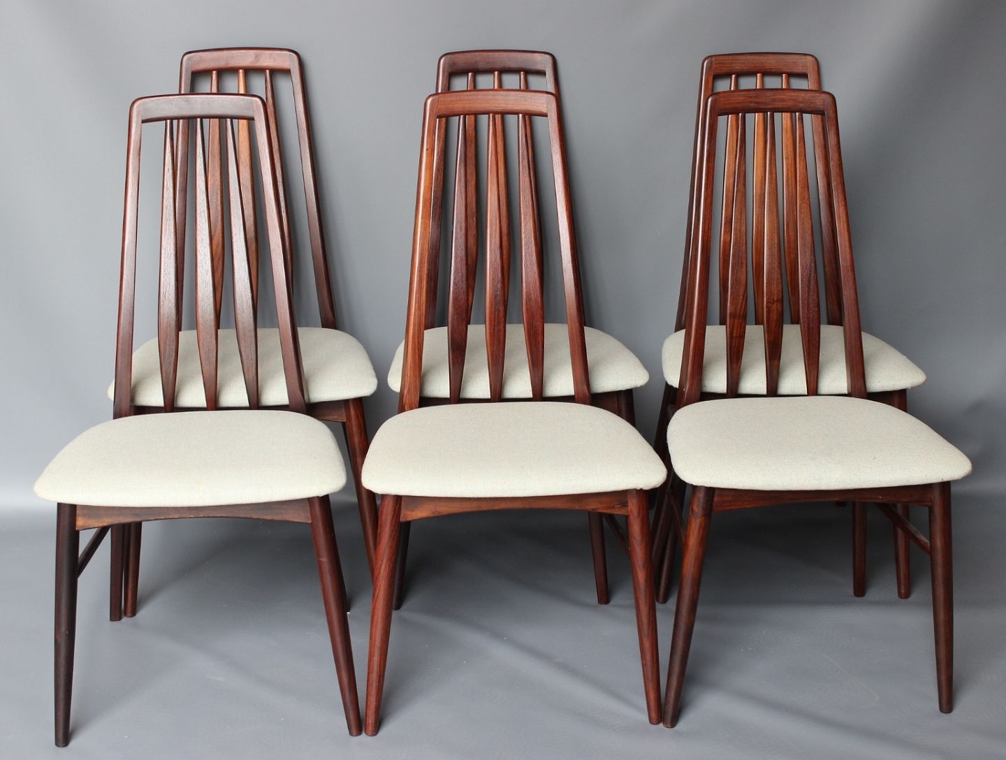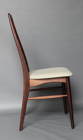 Sold6 Niels Koefoed chairs model Eva. Design from 1964, and the chairs are in rosewood and the seats in light wool. The chairs are manufactured by Koefoed Hornslet, odder