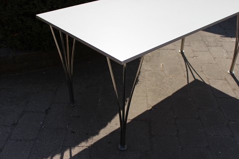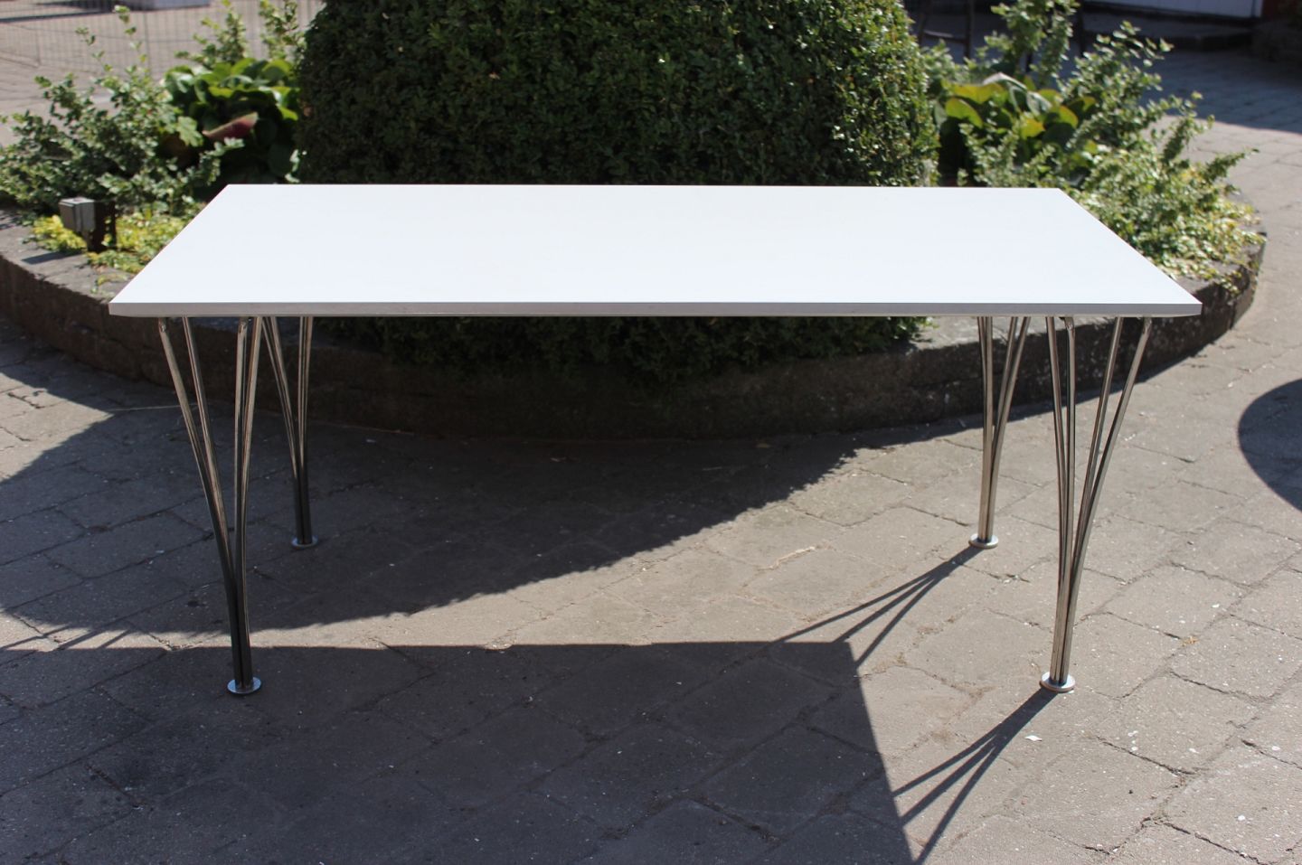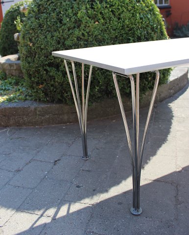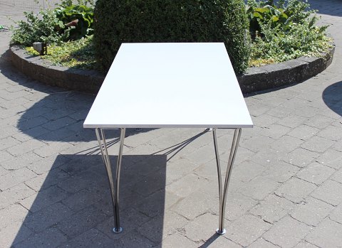 SoldPiet Hein coffee table in White laminate with steel edge. The table was designed by Arne Jacobsen and Piet Hein, Manufactured by Fritz Hansen.