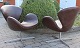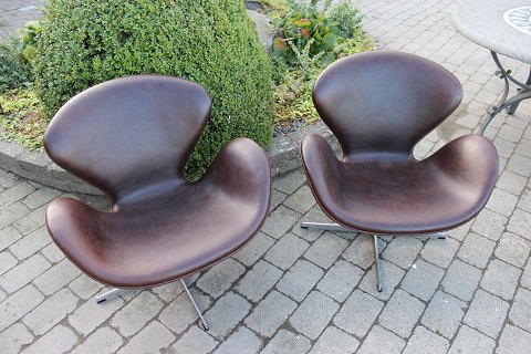 SoldA pair of swanchairs, model FH 3320, in dark Brown patinated leahter. The chairs were designed by Arne Jacobsen in 1958 and were manufactured by Fritz Hansen 1999.