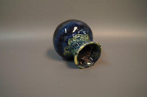 Ceramic vase with dark blue and green glaze from the 1960s by an unknown ceramic artist.