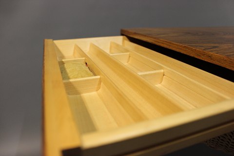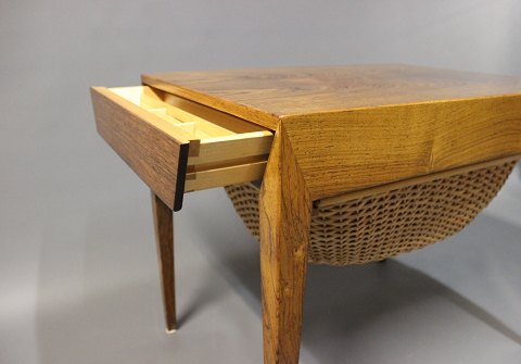 SoldSmall sewing table in rosewood and from the 1960s. The table was designed by Severing Hansen and manufactured by Haslev furniture factory.