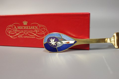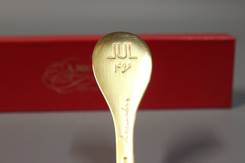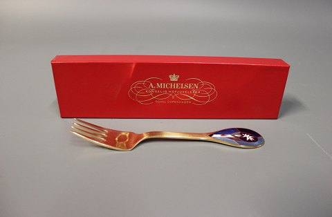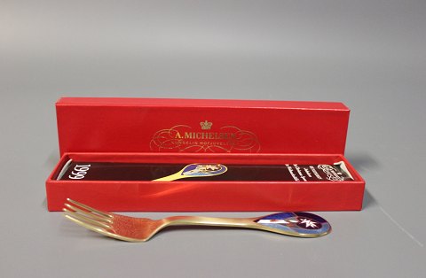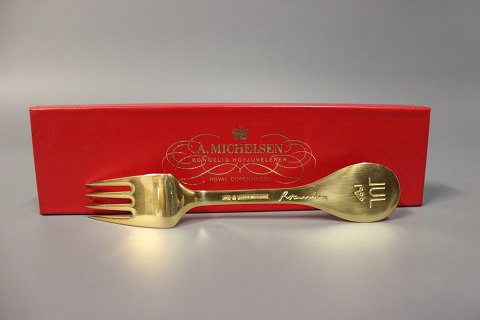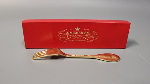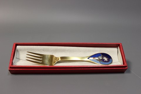 SoldChristmas fork by A. Michelsen from 1999, gilded sterling silver 925 s. The fork is with the motif "The stars' light" and designed by Peter Brandes.