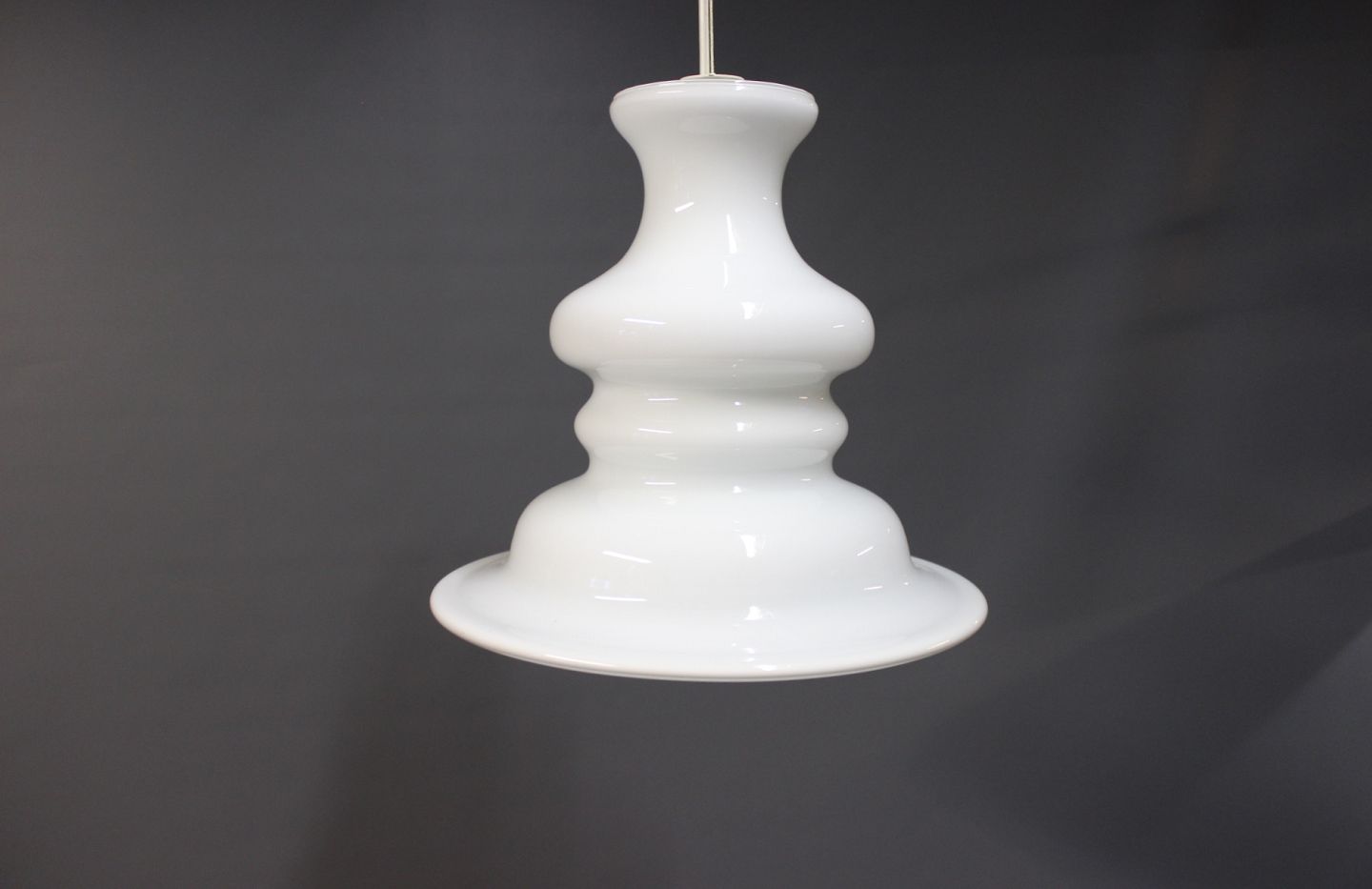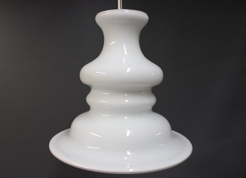 SolgtHolmegaard bibliotek pendel i tolags opalglas. Designet af Sidse Werner og produceret af Fyens Glasværk.