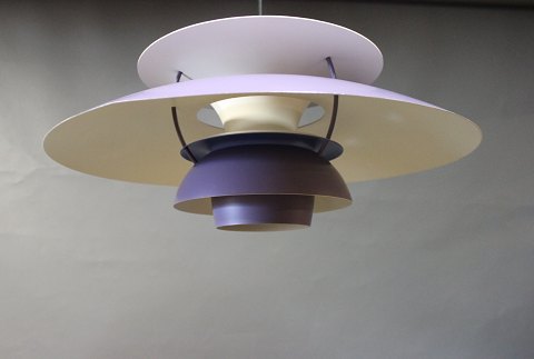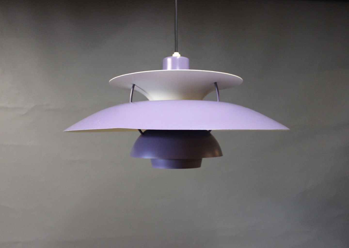 PH5 pendant designed by Poul Henningsen in 1958 and manufactured by Louis Poulsen. The pendant has purple lacquered metal Shades.