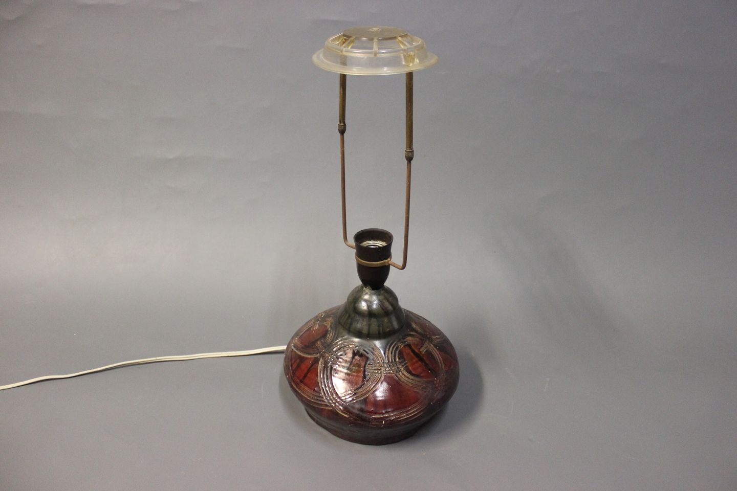 SoldTablelamp in ceramic with dark red and Brown glaze. New lampshade can be purchased.