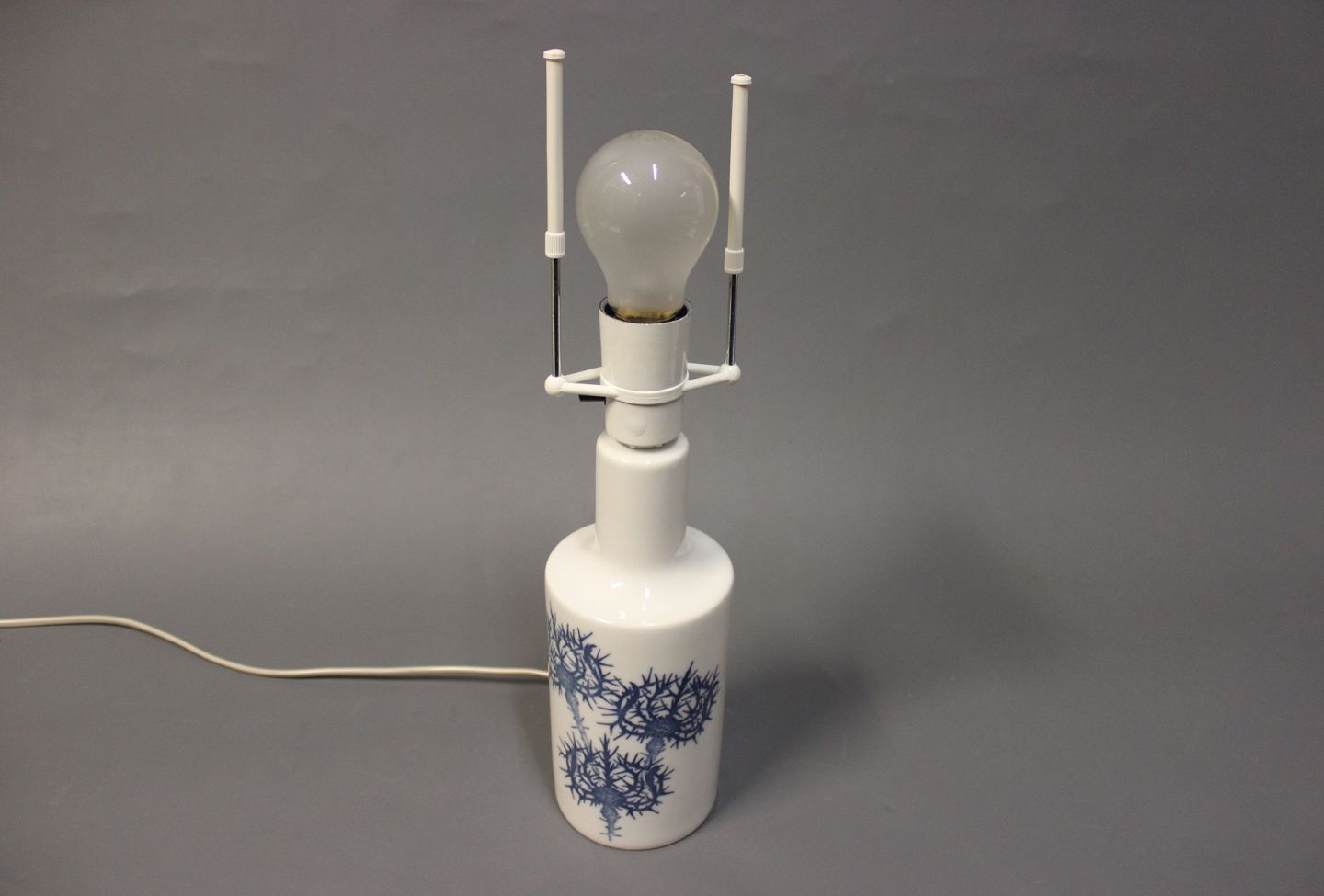 Royal Copenhagen tablelamp decorated with blue thistles.