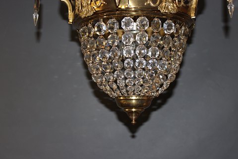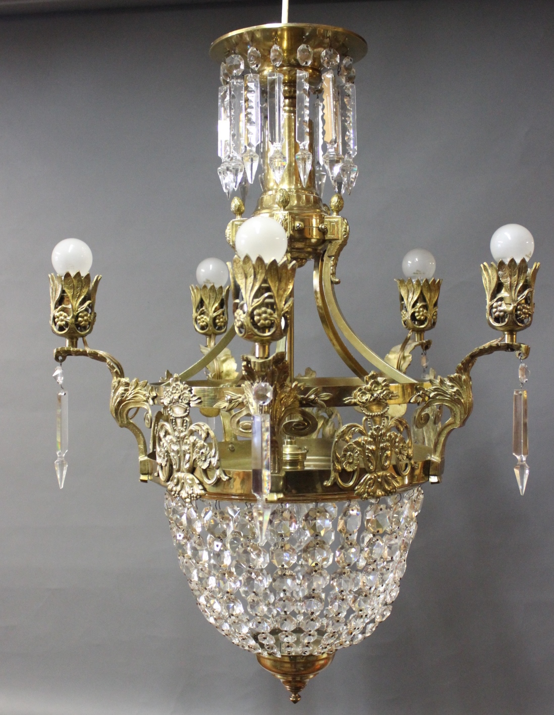 Crystal Chandelier, Five-armed with patinated brass .from around 1910
