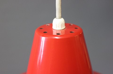 SoldA pair of Classic red "Workshop"lamps by Louis Poulsen from the 1960s.