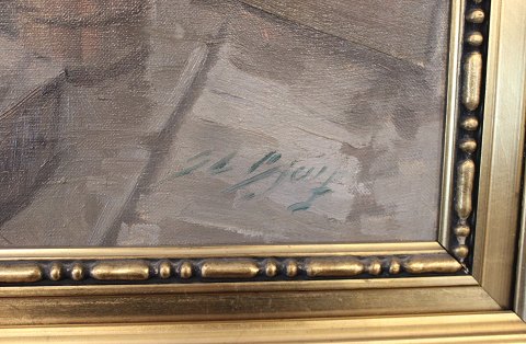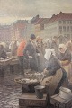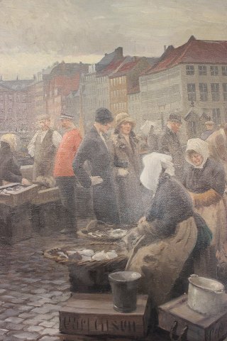 Large painting of fishwives selling fish at Gl. Strand in Copenhagen by Søren Chrsitian Bjulf, from around the 1920s.