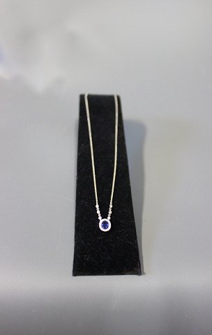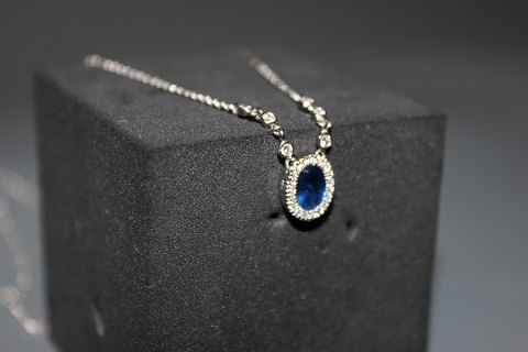 18 carat White gold neclace with 21 0,01 d., 6 0,03 d. and a saphire.