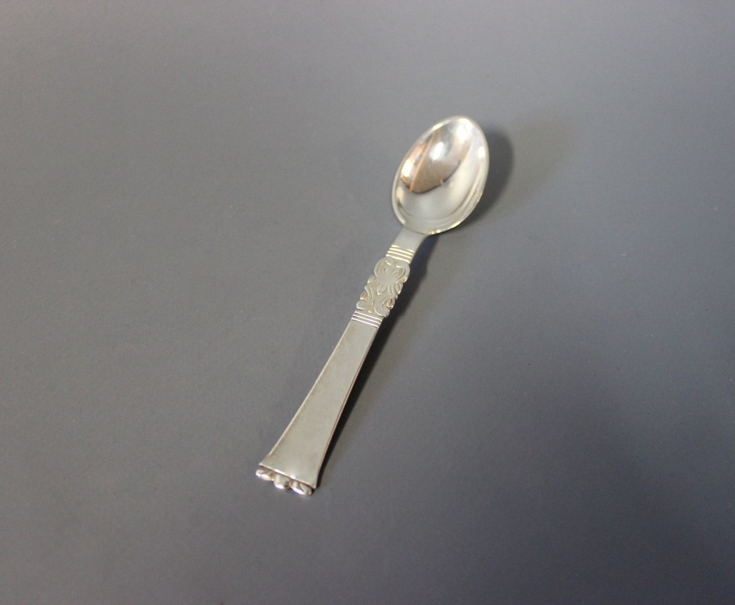 Tea spoon in "Rigsmoenster", hallmarked silver.