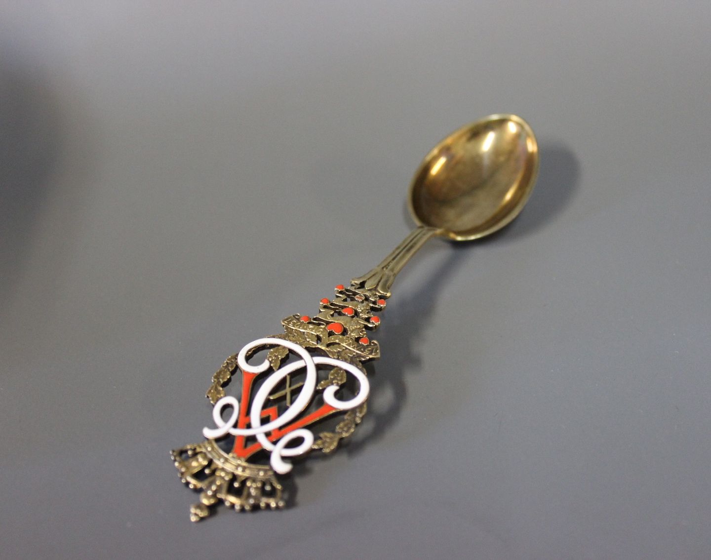 A. Michelsen Remembrance spoon in occasion of Christian the 10th and Queen Alexandrine's 25th ruling anniversary, 1912-1937.