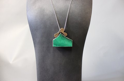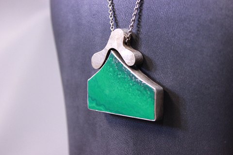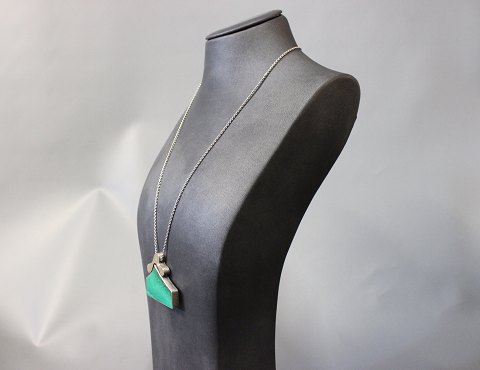 SoldSilver chain with a large pendant with a green stone.