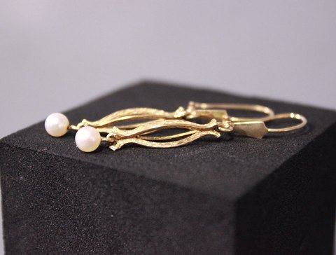 SoldEarrings in 14 ct. gold with small cultured Pearls.