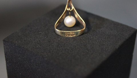 Vedhæng i 8 kt. guld med fin lille kulturperle, design af BH.