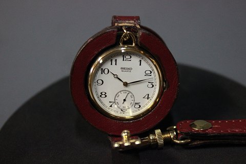 SoldDelicate pocket Watch by Seiko in red leather case.
