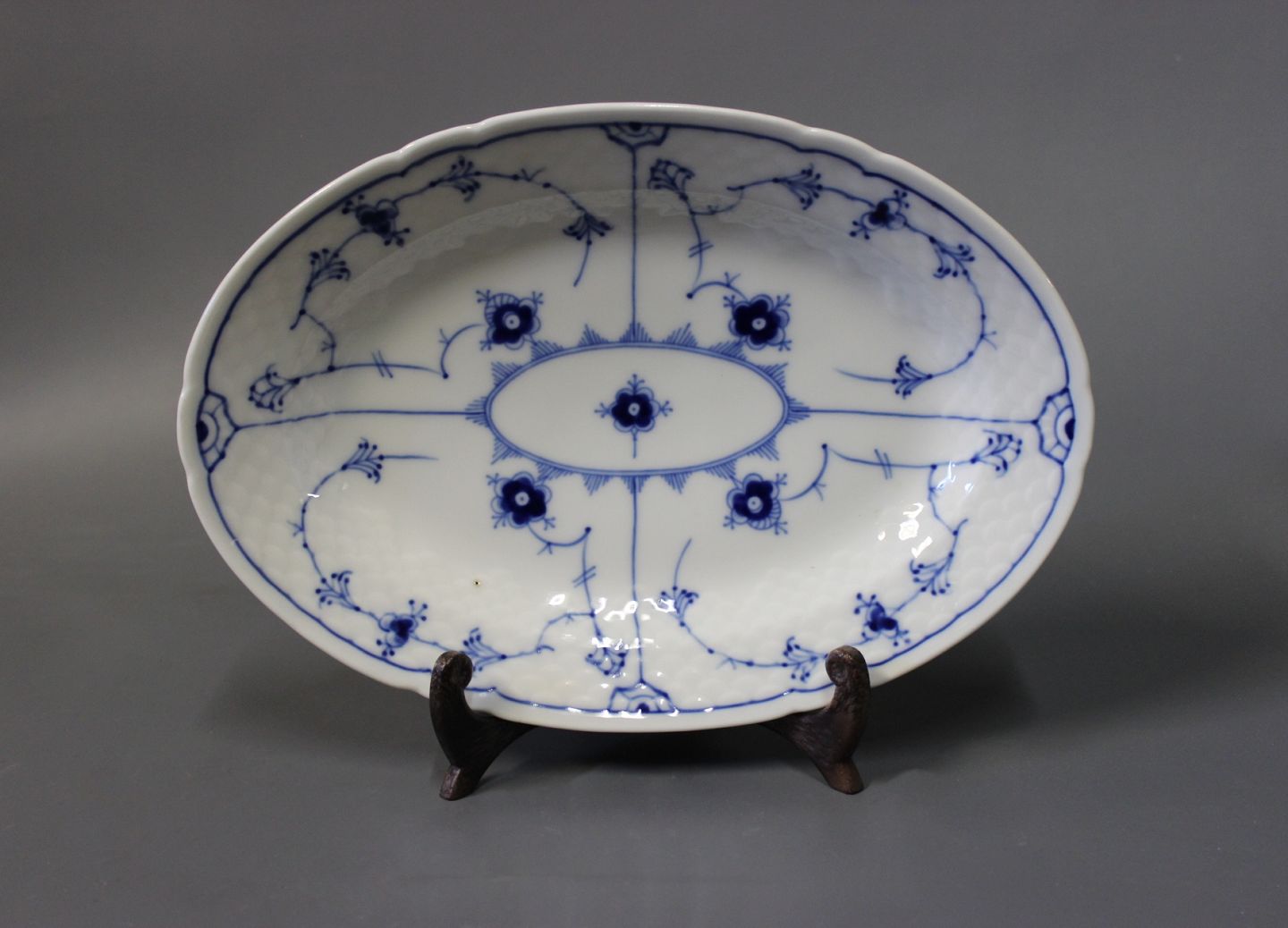 B&G blue fluted/blue painted medium sized oval dish, #318.