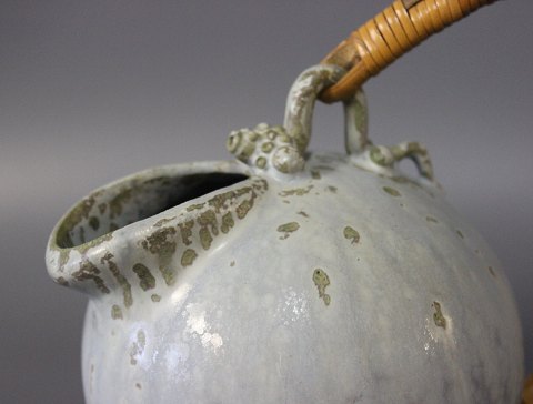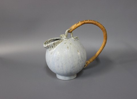 Ceramic jug in light colors with a paper cord handle by Arne Bang, no.: 151.