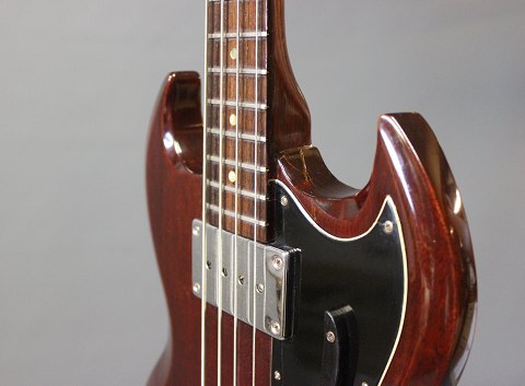 Gibson bass guitar, model EB-0, from 1967 in polished mahogany and newly refurbished. This model was first introduced in 1959 and the production stopped 20 years later in 1979. The bass guitar from the year 1967 is charactarized by it's more slim neck and other small adjustments which sets it apart from other years.