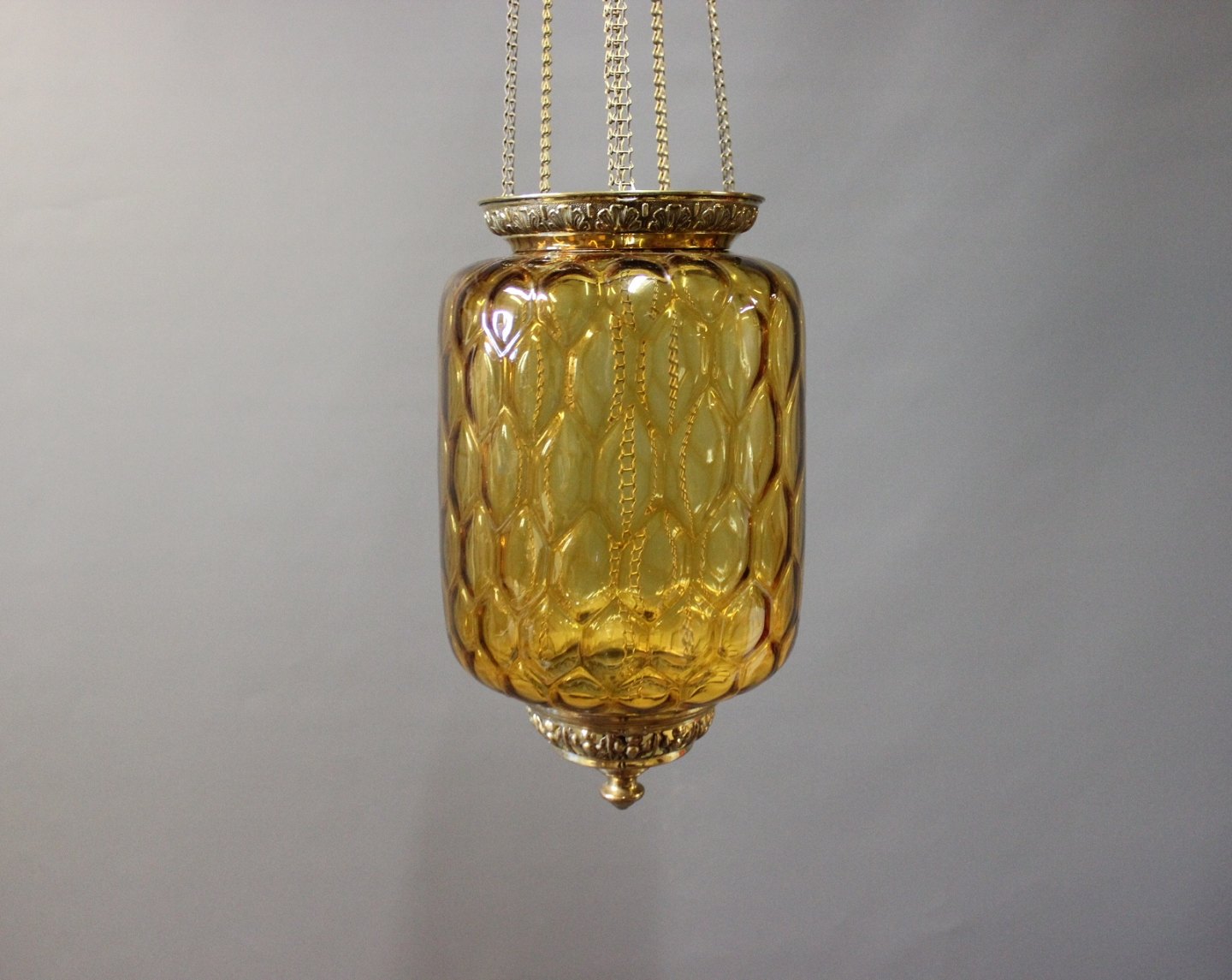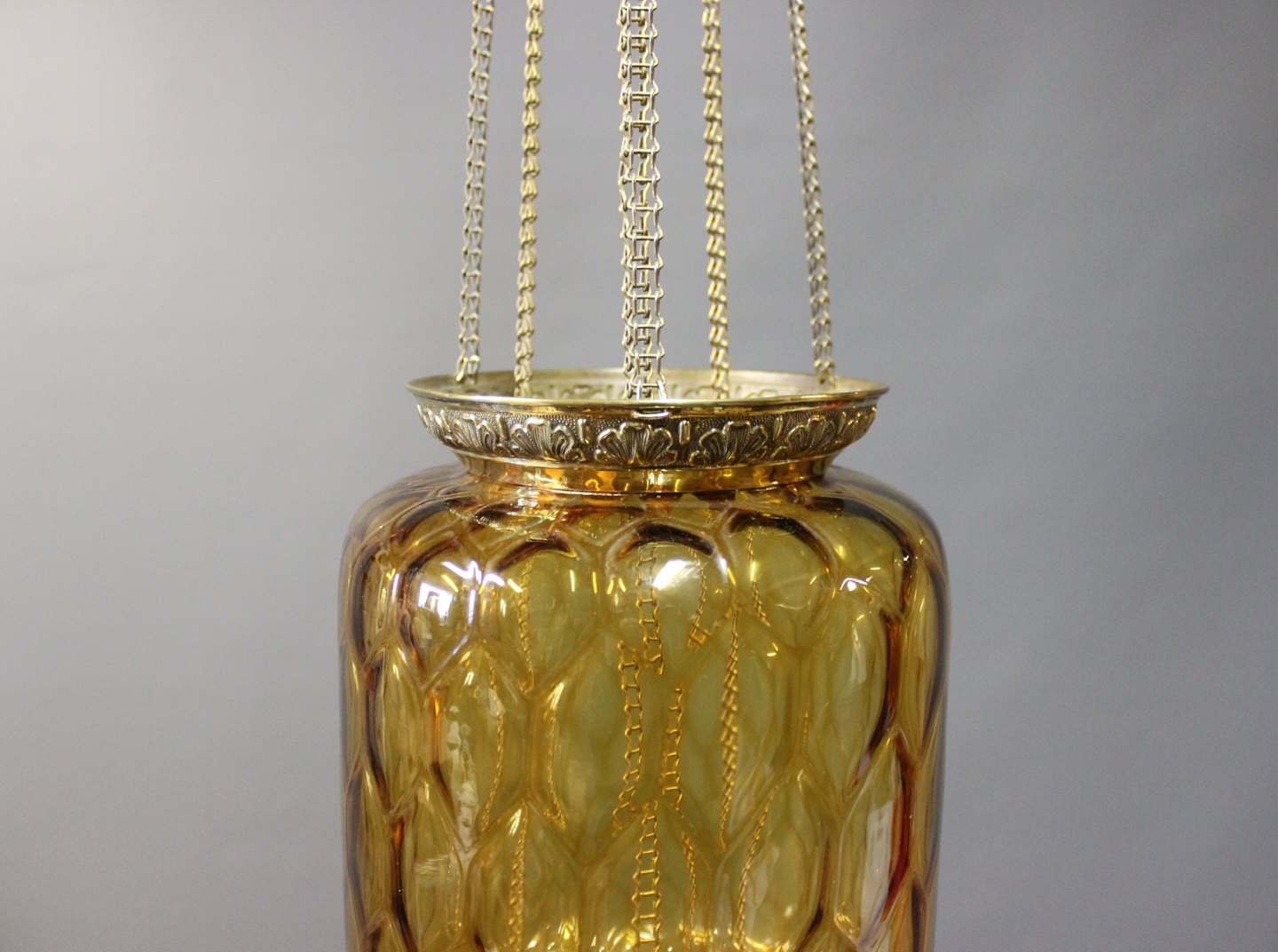 Pendant in yellow glass with brass mounting from the year 1860. The lamp has been refurbished.