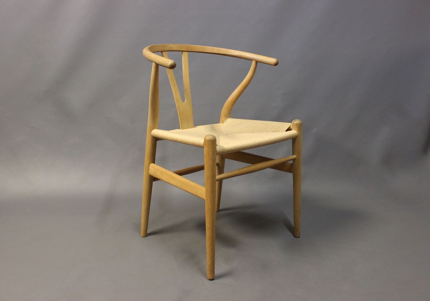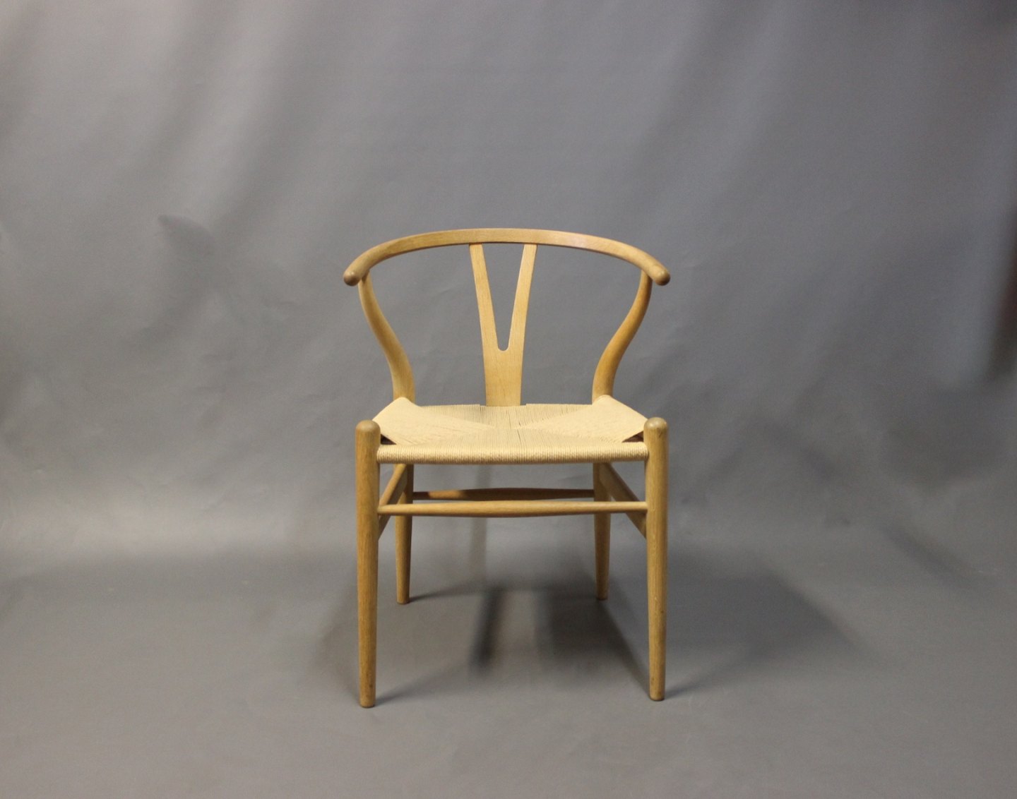 SolgtY-stol, model CH24, designet af Hans J. Wegner i 1950 og fremstillet hos Carl Hansen & Søn. Stolen er med fletsæde, i sæbebehandlet eg og er nyligt istandsat.