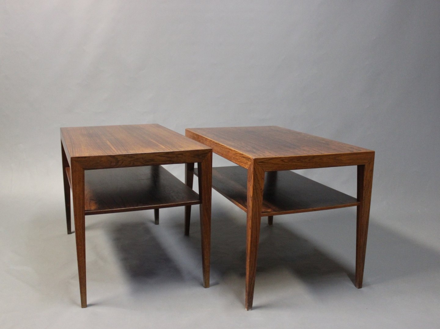 SoldA set of side tables with shelf in rosewood by Severin Hansen for Haslev furniture factory. The tables are with the number 43.