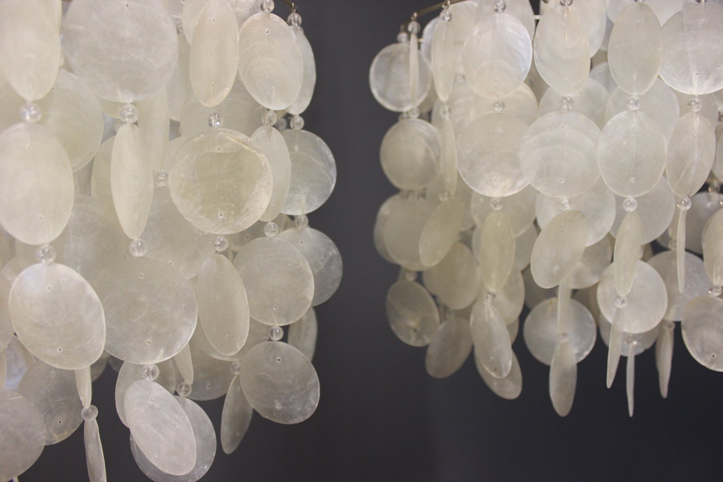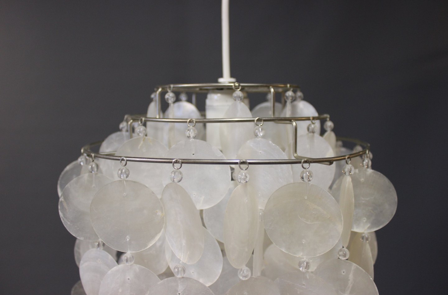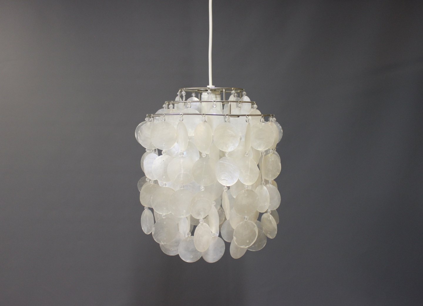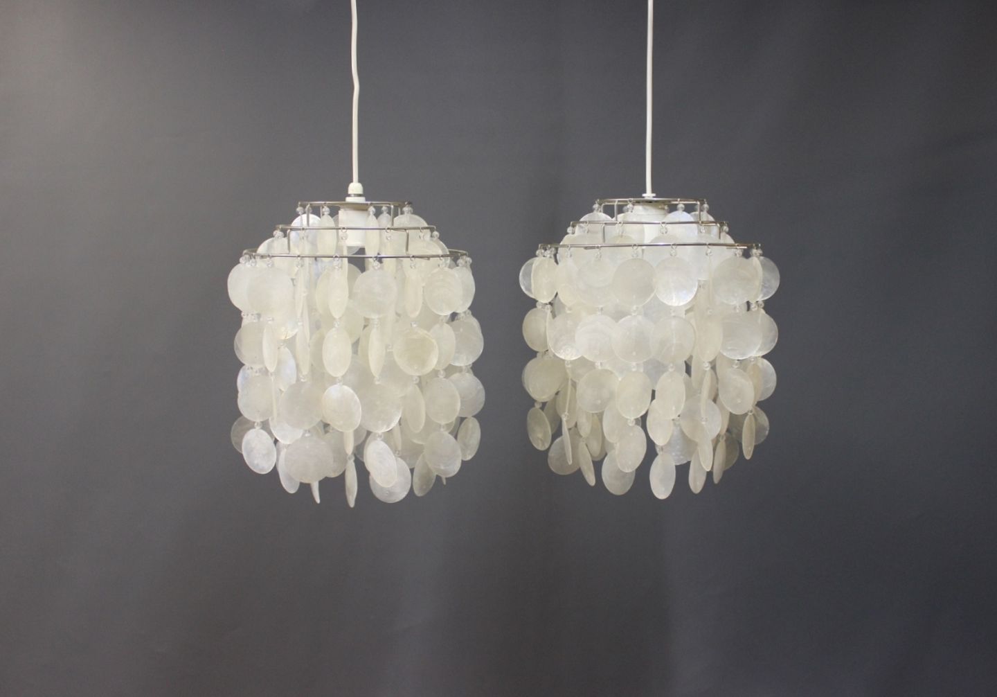 SolgtEt par FUN pendler designet af Verner Panton i 1955 og fremstillet hos Verpan. Pendlerne er med skaller af Perlemor.