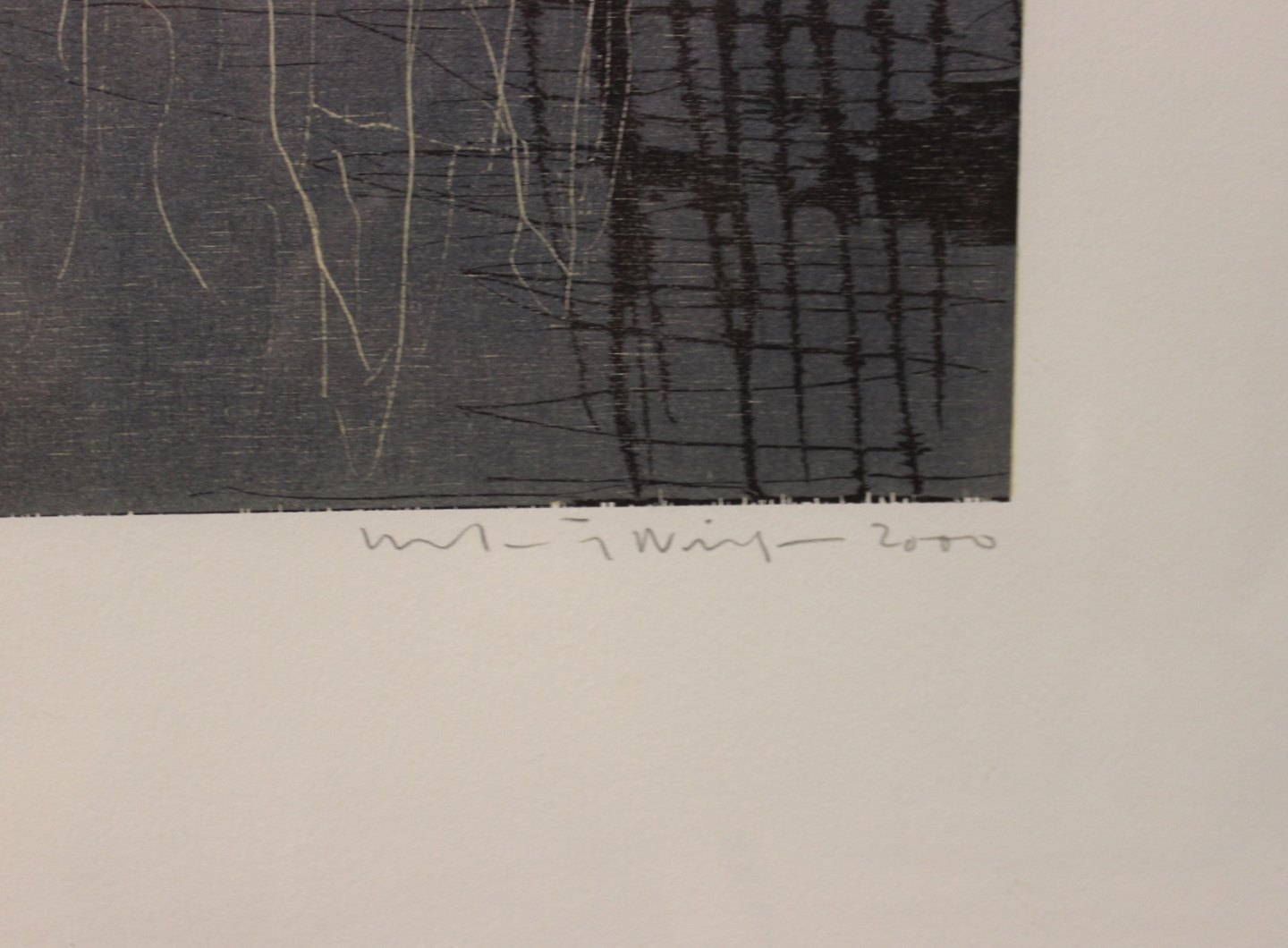 Woodcut in dark colours signed Kehnet Nielsen 2000.
