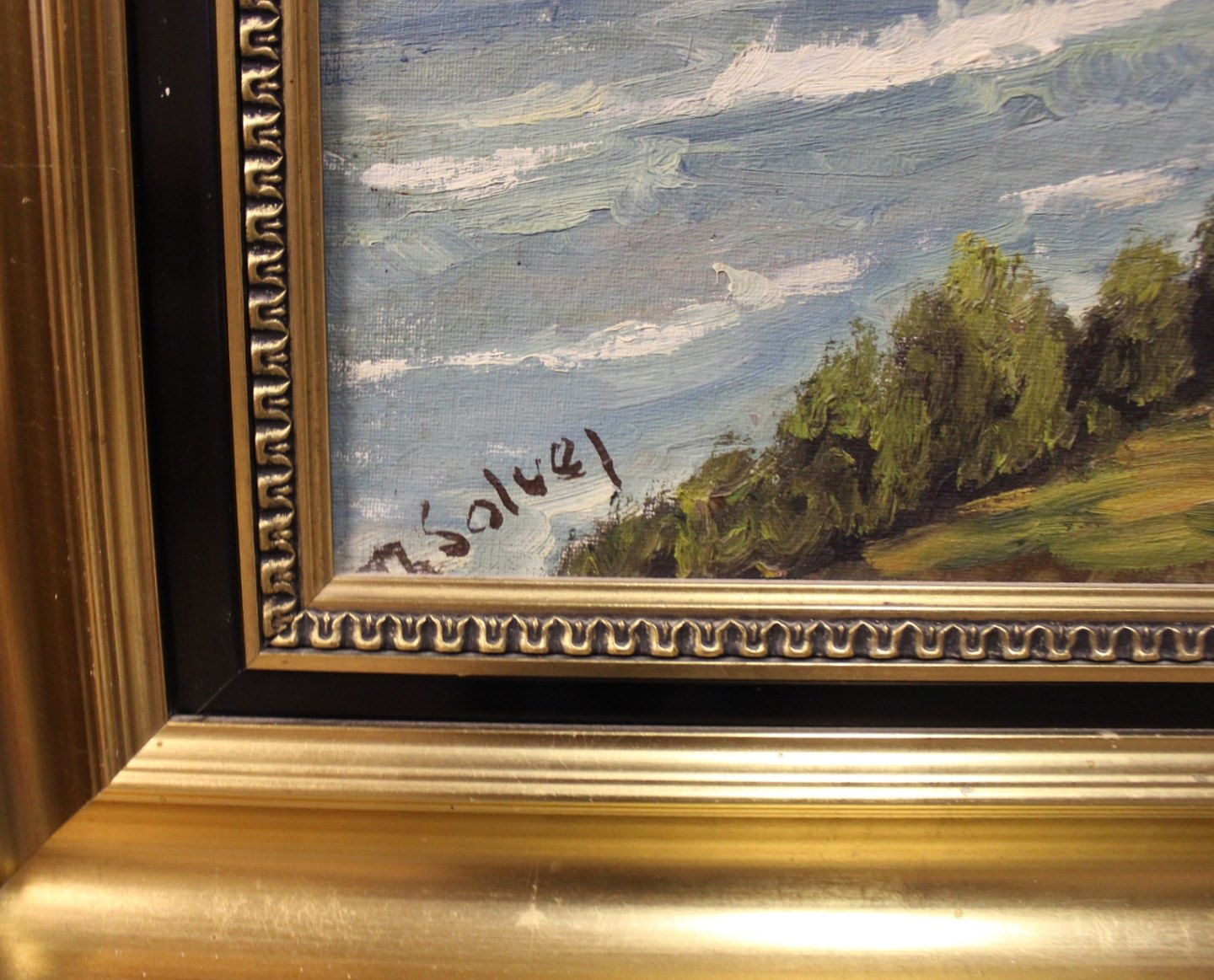 Oliemaleri på lærred af kystlandskab signeret Solvej.