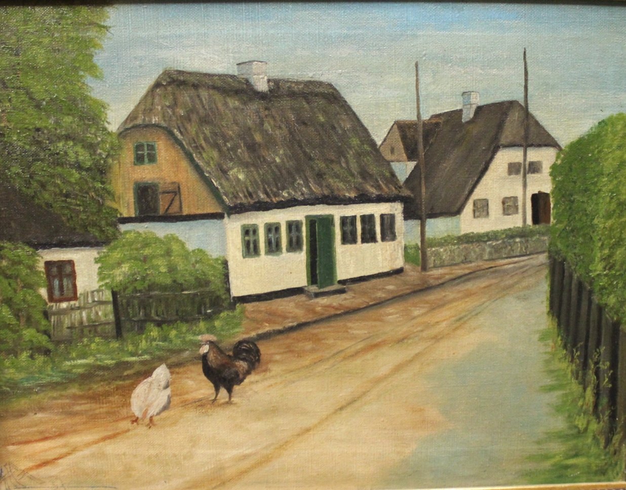 Oliemaleri på lærred af landbillede af ukendt kunstner.
