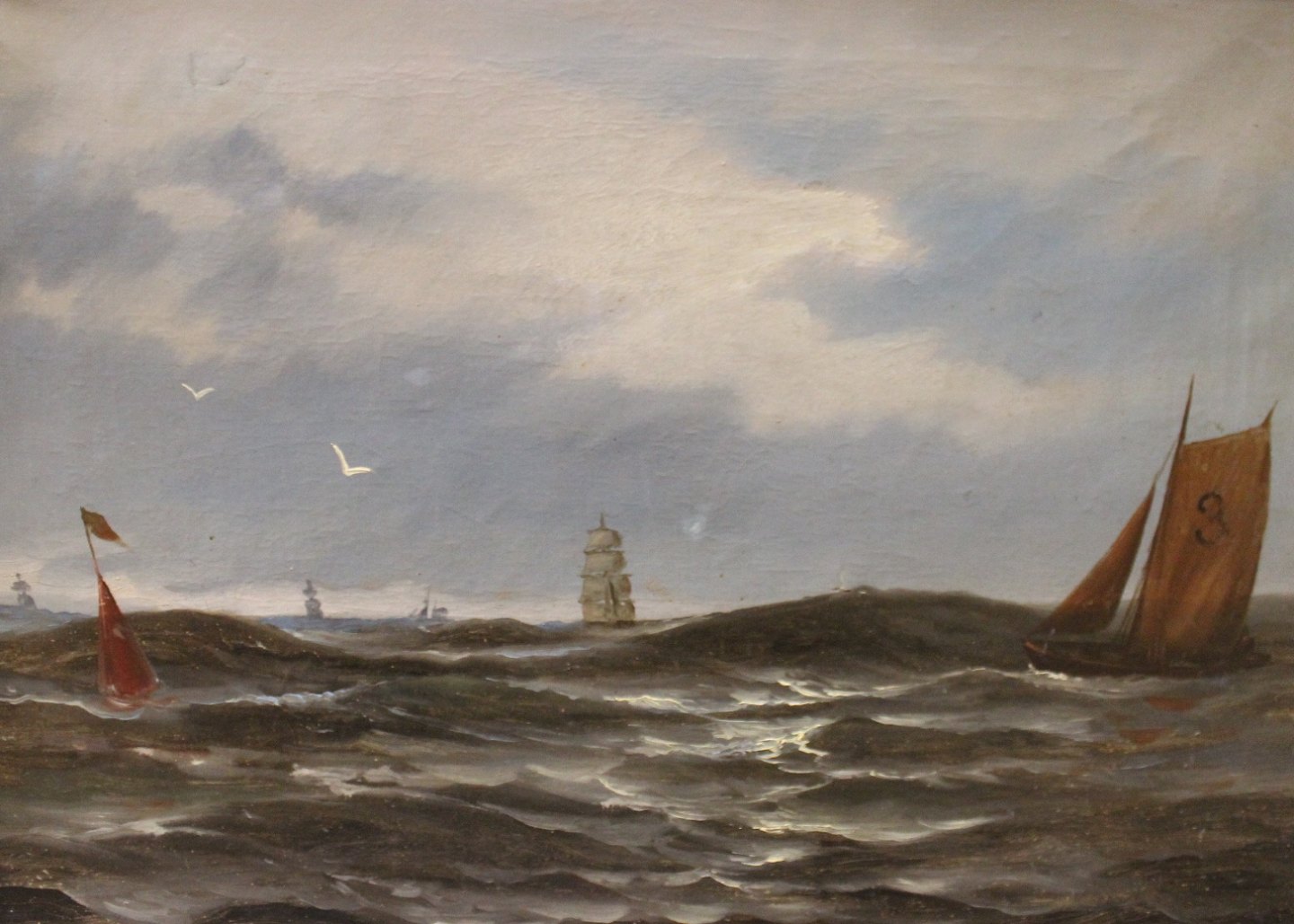 Navy painting with frame decorated with gold leaf by an unknown artist.