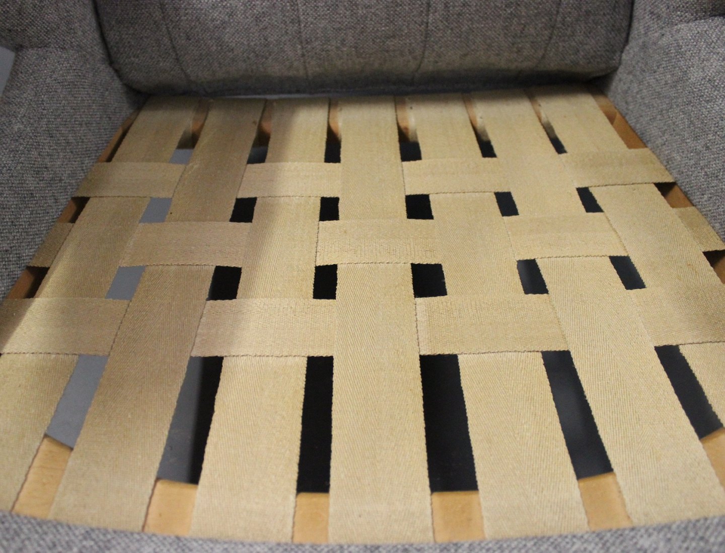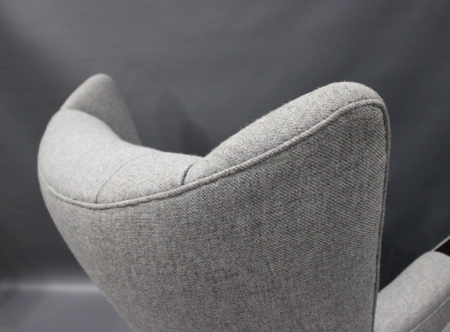 SoldPapa Bear chair, model AP 19, and stool model PP120, designed by Hans J. Wegner in 1951/54 and manufactured by A.P. Møbler. The chair is upholstery in light and dark grey Hallingdal wool, legs and paws of teak.