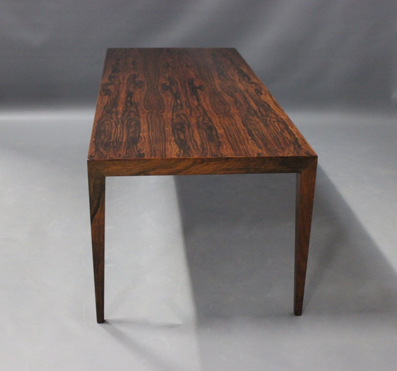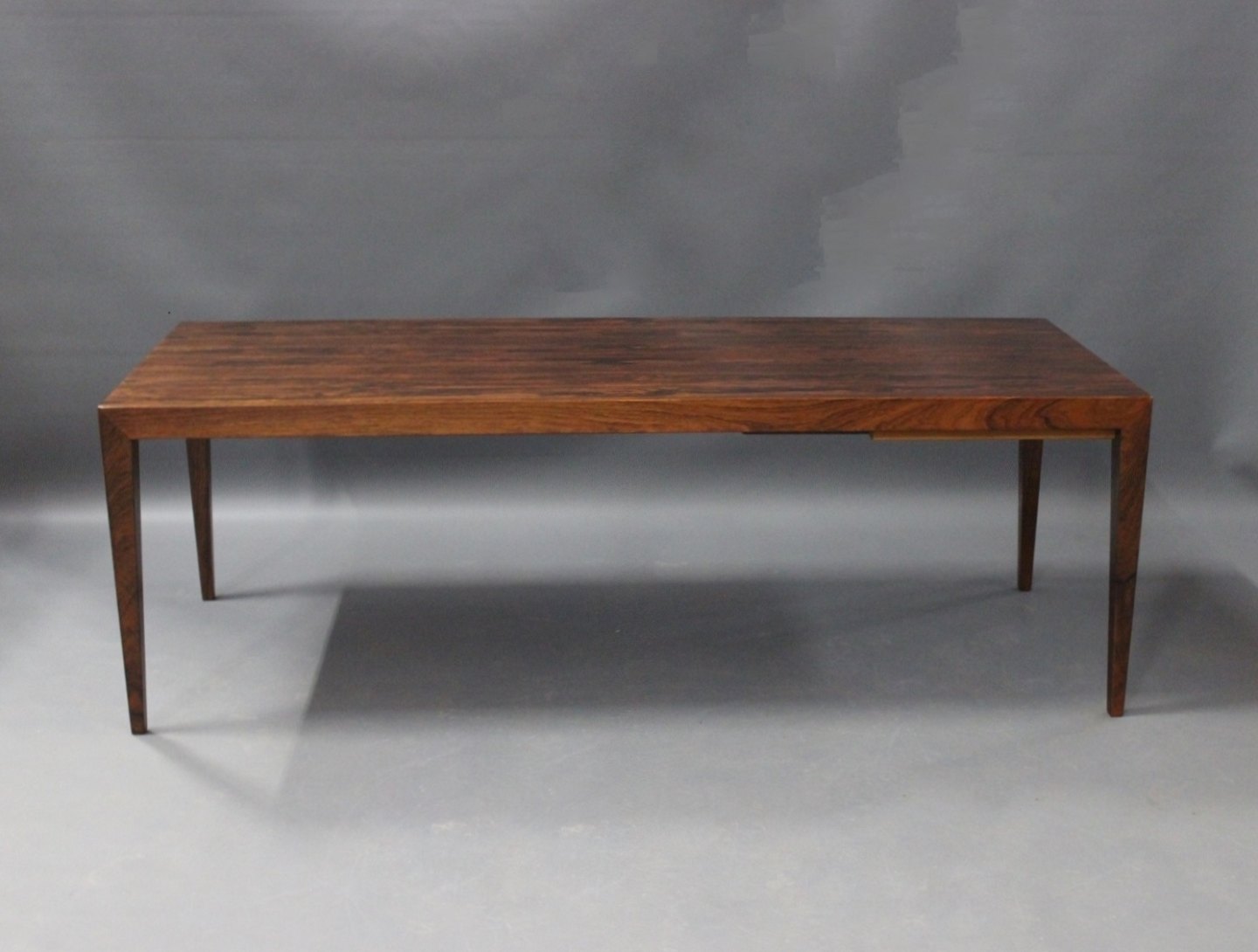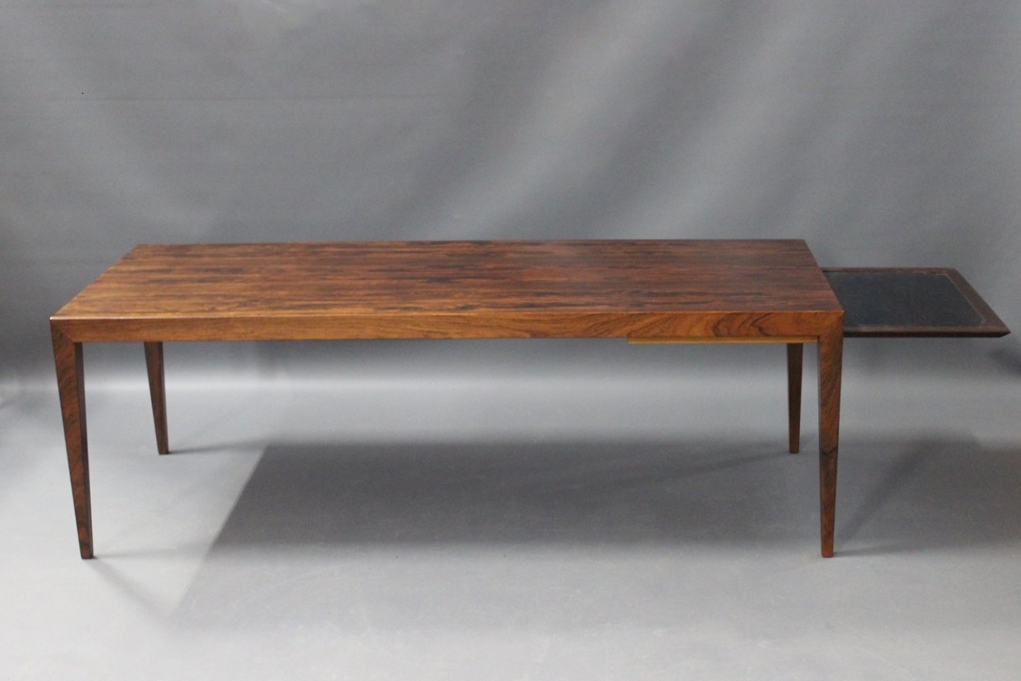 SolgtAflangt sofabord i palisander med udtræk designet af Severin Hansen i 1960erne for Haslev møbelfabrik.