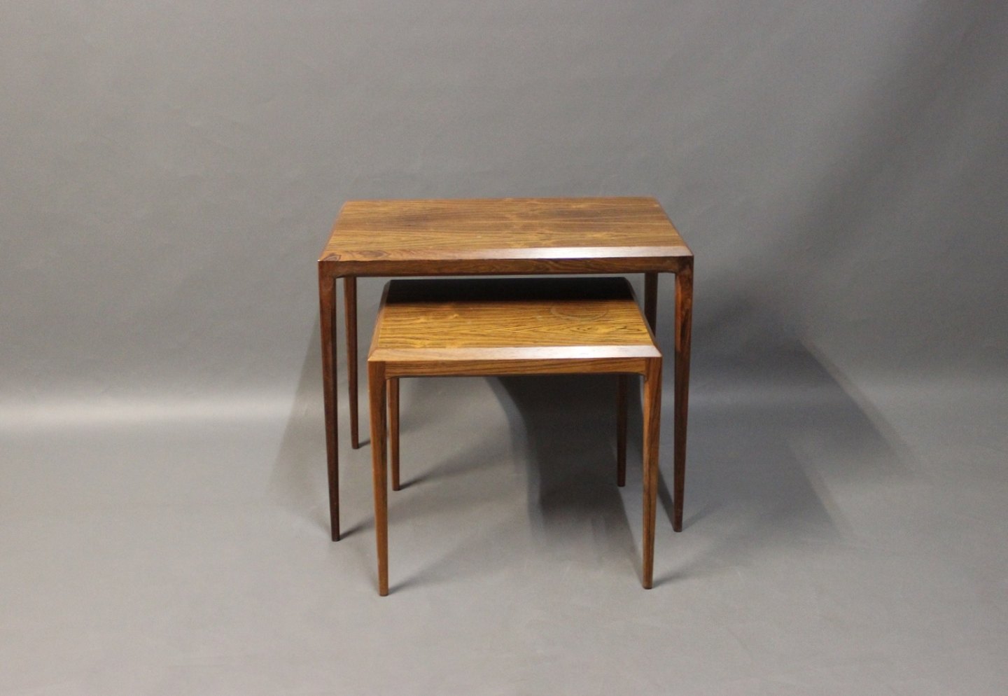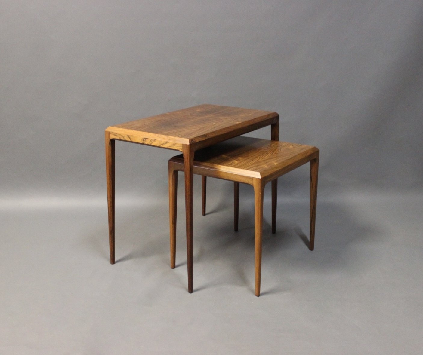 A set of nesting tables in rosewood designed by Johannes Andersen and manufactured by CFC Silkeborg in the 1960s.