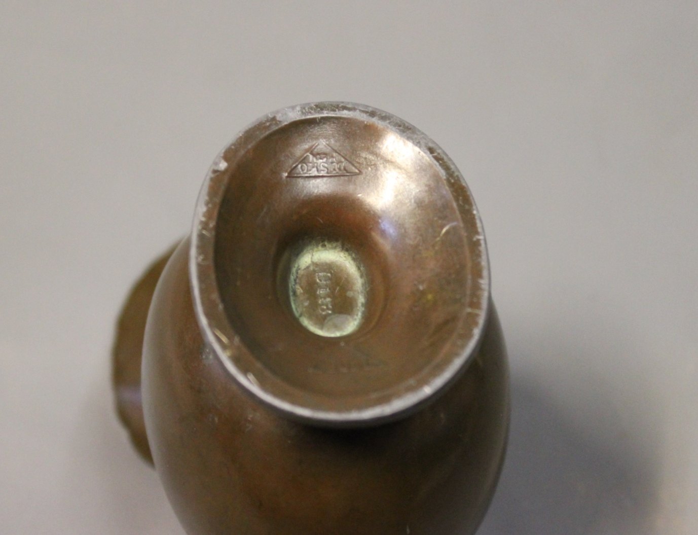 SoldSpecial vase in disco metal, designed by Just Andersen in the middle of the 1930s. The vase is numbered D118.
