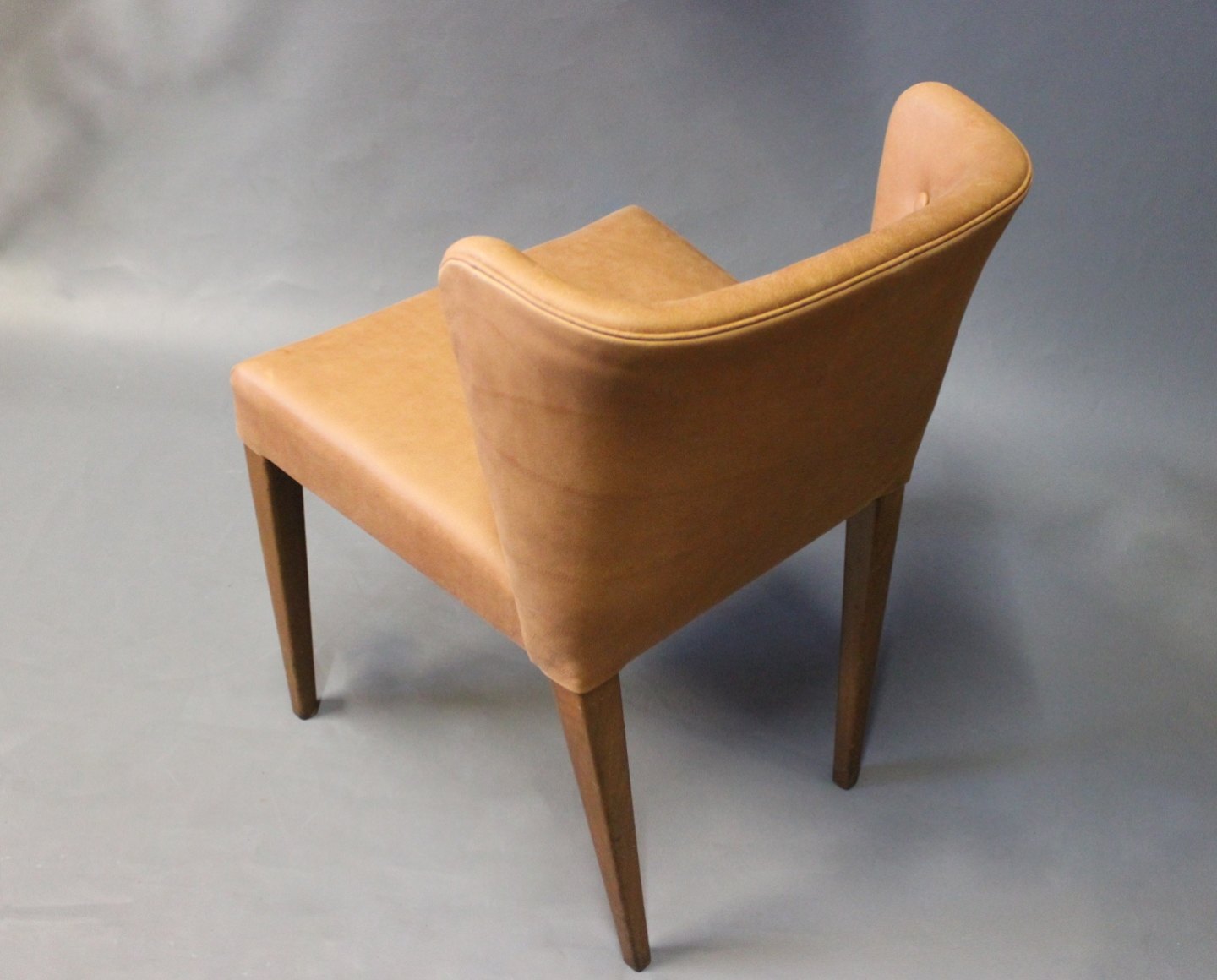 Denne stol af Egon Bro Pedersen har vi ompolstret samt ordnet træværket efter kraftig brandskade.
