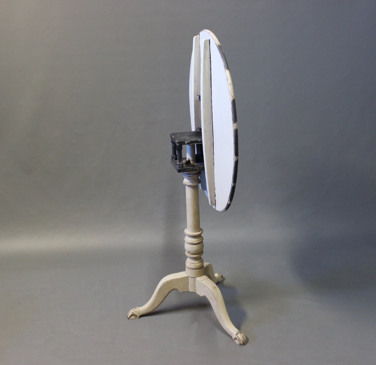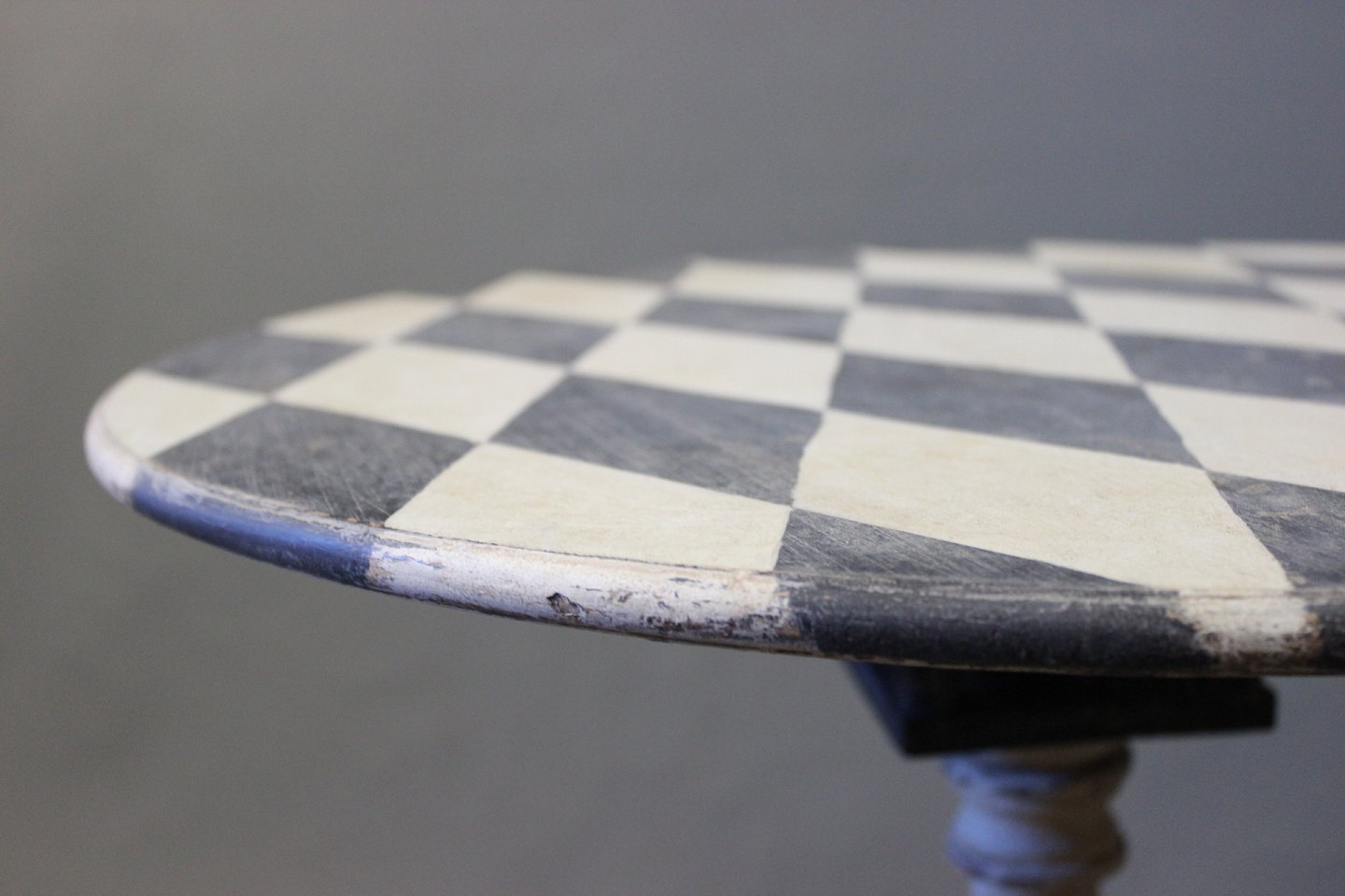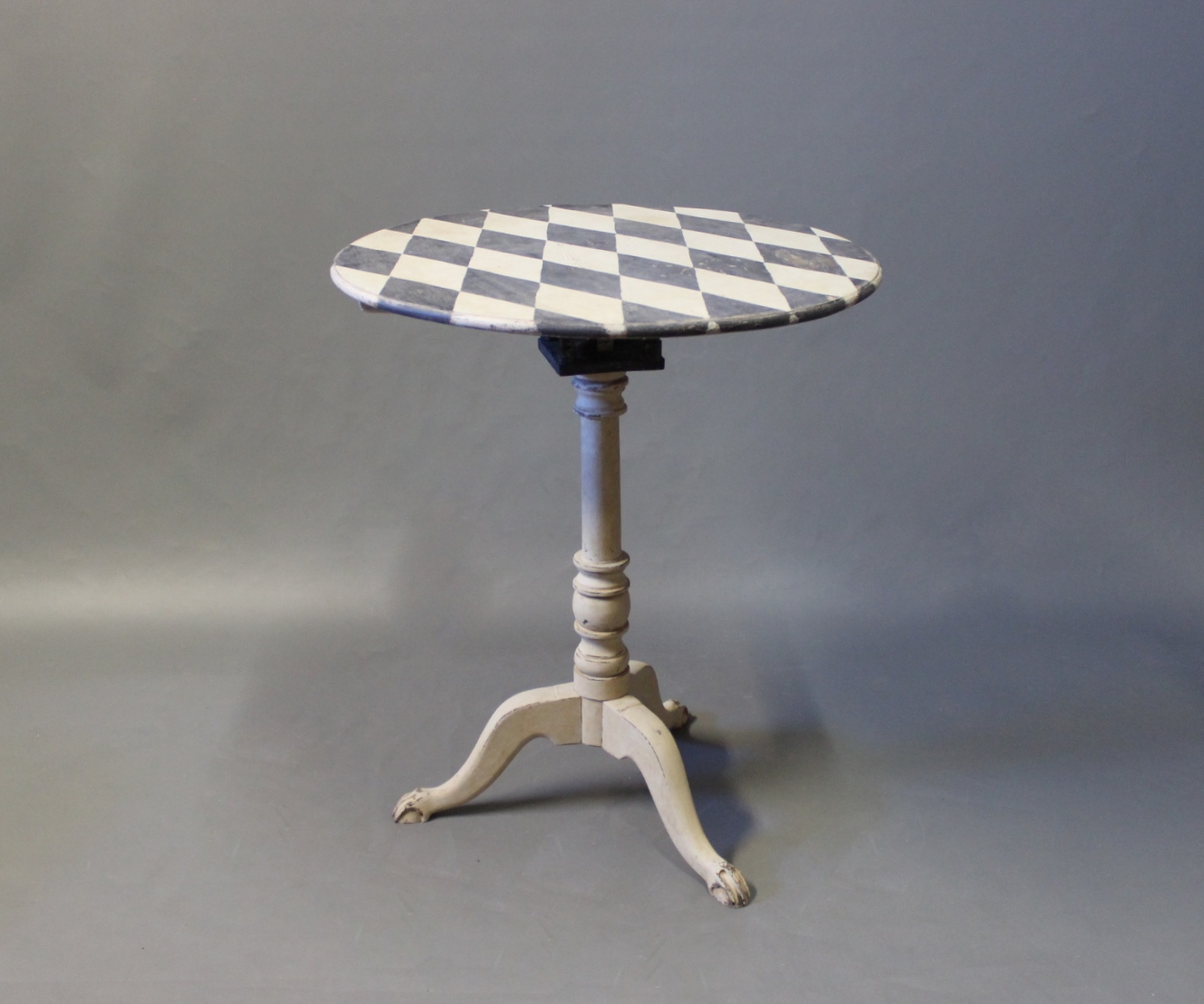 SolgtGråmalet lampe-/sidebord med skakternet overflade i stilen Gustaviansk fra omkring år 1840.